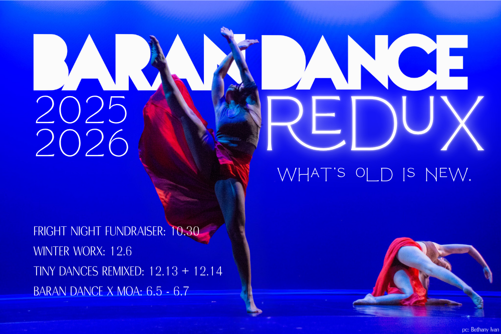 We are thrilled to announce our 14th season — REDUX: What’s Old is New. Join Baran Dance as we reimagine past works and experiences through a fresh lens throughout 2025-2026. Many more details to come, but SAVE THE DATES!